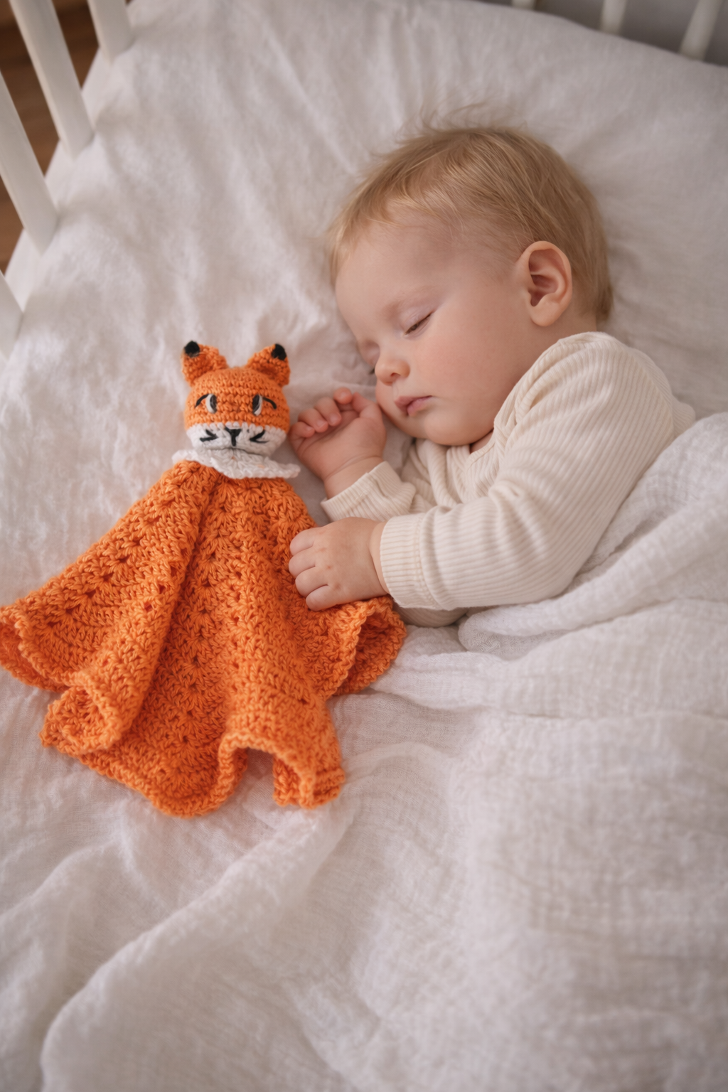 Filou, le petit renard est un doudou lange au crochet, entièrement fait main en coton mercerisé. Doux, léger et plein de tendresse, il accompagnera bébé au quotidien pour des moments de réconfort et de douceur. Une création artisanale unique, idéale comme cadeau de naissance.